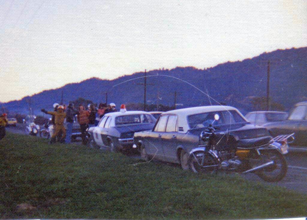 As we entered Auckland a cop appeared and stopped us, saying that we could not tow a bike with a bike. There was a girl travelling with us in a Mk1 Cortina, so we moved the towrope to that and drove/rode on to Huntly.