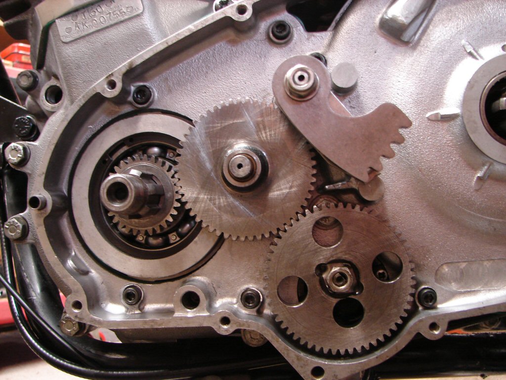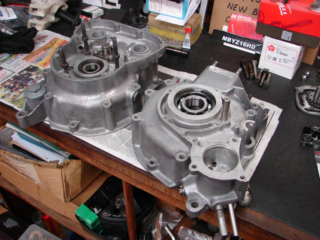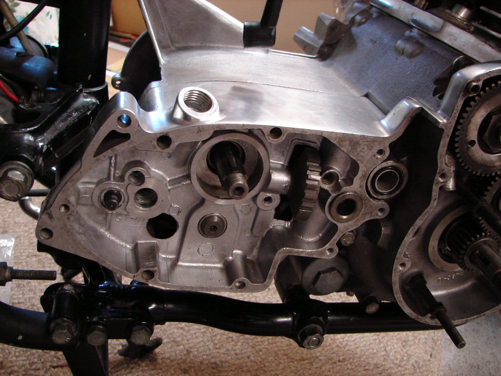 Obviously both joint faces need to have been coated with sealant before getting mated together, and all the various O rings which seal the oil filter cavity and the gearchange cross shaft also have to be in place. Not that it is difficult to pull the case away again if necessary, but 'planning' should mean you don't have to.