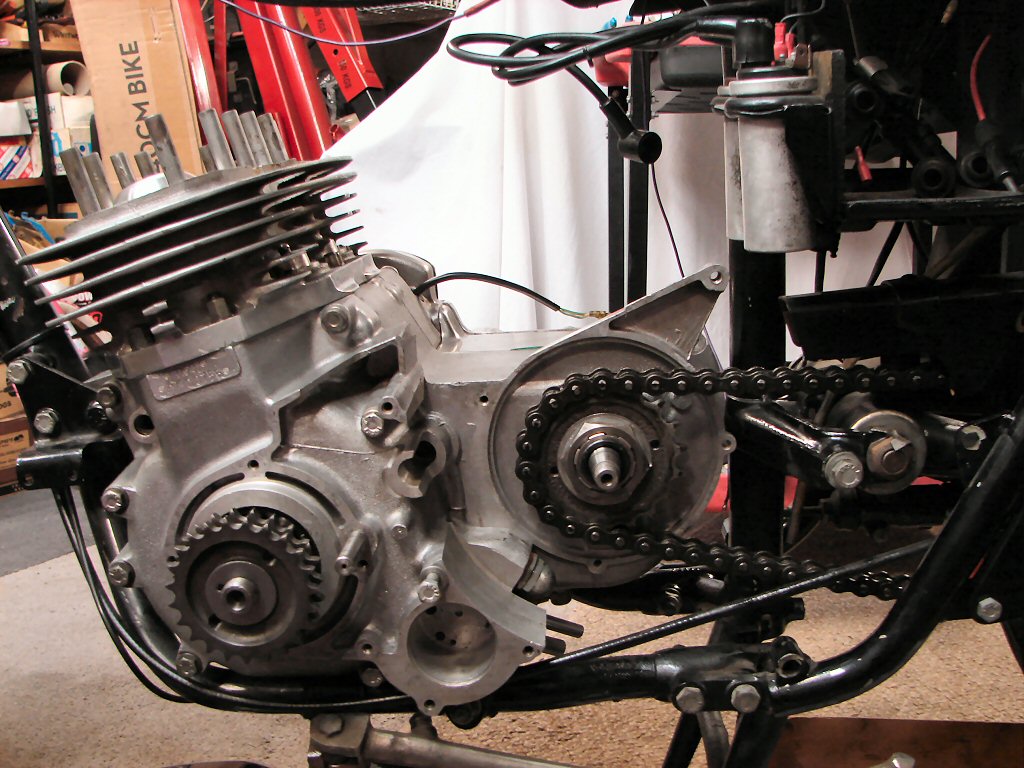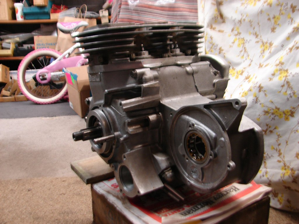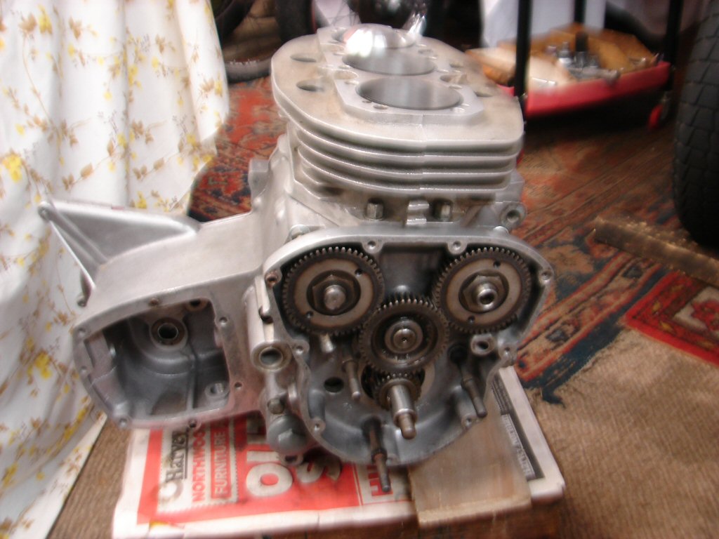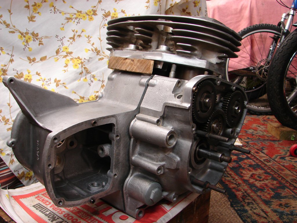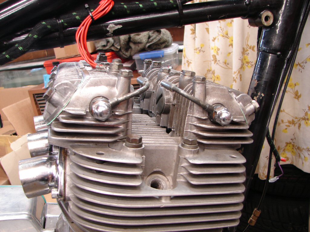 Pretty big holes down them inlet tracts, and I believe there are Mikuni carbs attached to them, so it should be quite a serious performer when going as it should.
