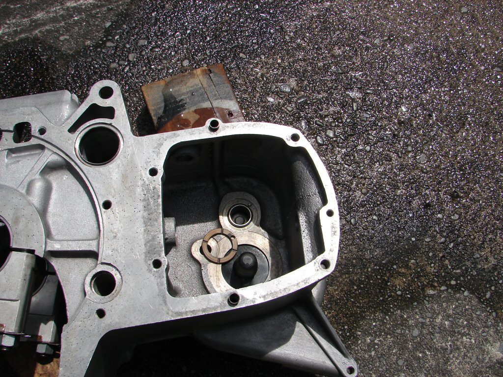 Usually having got to this stage I would continue finalising the torquing of main bearing caps as the crank would not be needing to come out again. Unfortunately whoever stripped the bike 15+ years ago had decided in their infinite wisdom to remove the gearbox layshaft blind needle roller bearing from the left side of the centre crankcase. I realised after I actually found the old bearing that the case would have to be heated in order to get a bearing back in there, and this would entail pouring boiling water inside the gearbox housing, so working with a crank sticking out the sides was not an option.