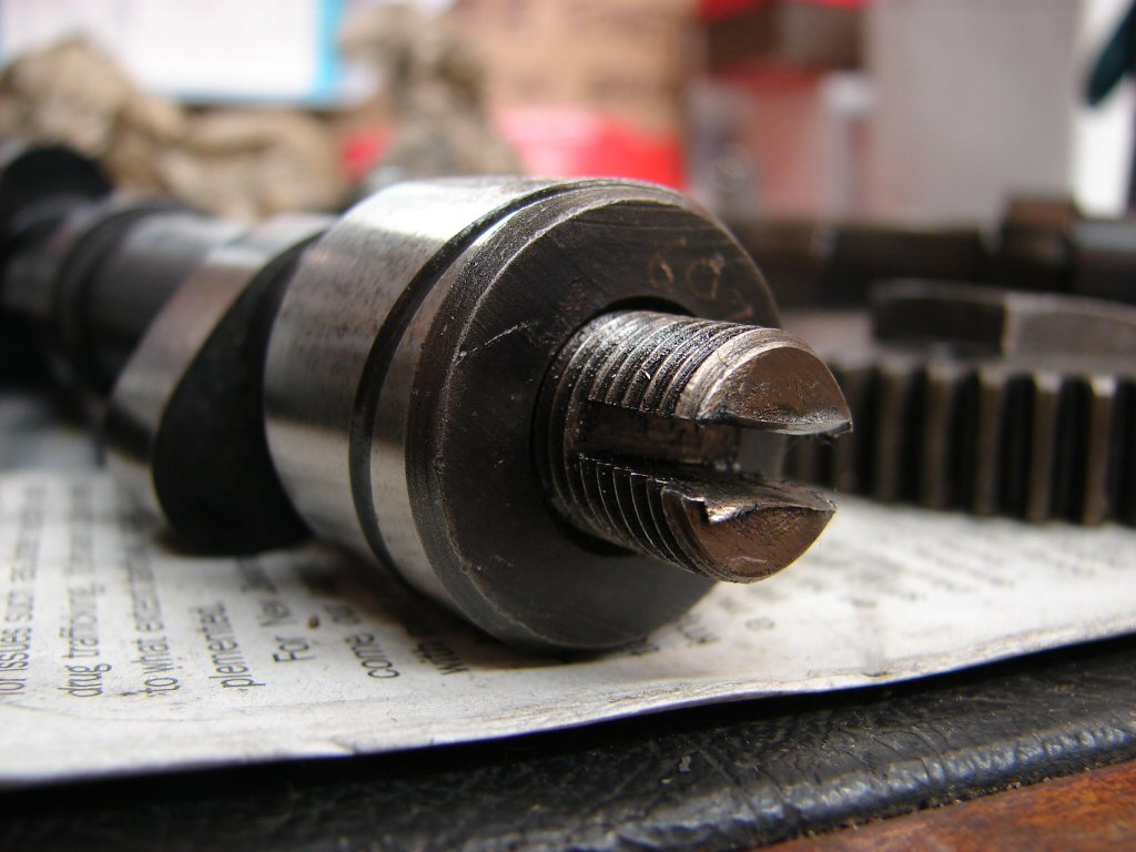 I had never really thought about it, but the camshaft is hollow, and with the insert removed you can see right through the centre to where the ignition taper is at the far end. After some trial fits I got to the point where the insert would enter the cam thread either way around, so I figured it would probably accept the whole thing now, and screwed it as far in as it would go.