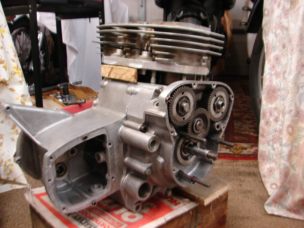 The case was then introduced to the crankshaft as the cams were guided through beneath the block, until it also engaged with the two studs, after which it was a doddle to tap gently around the periphery with a light mallett and the whole thing slid home. A very rewarding process and totally free of any stress to any parts whatsoever.