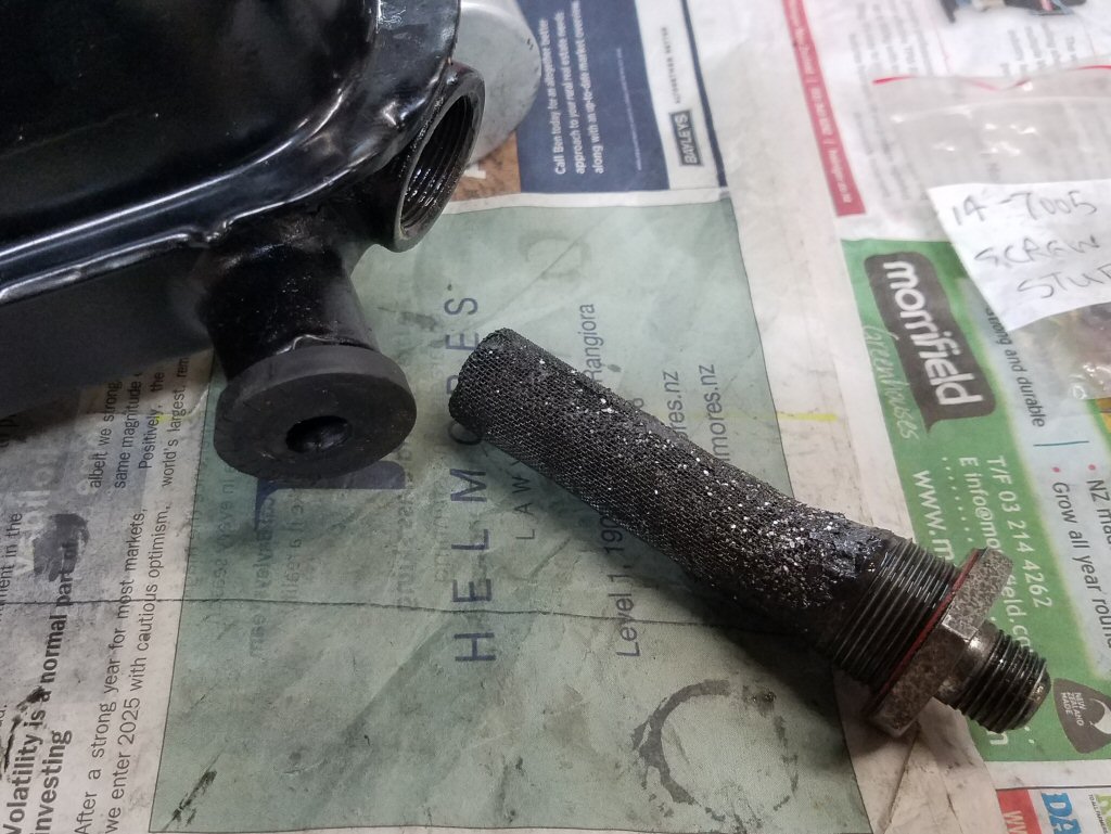 The oil pump got primed with oil then flushed with CO contact cleaner, but no signs of any sparkly bits. When opened up the pressure side was clean as, and despite a few more flushes nothing came out of the scavenge side either. Hard to imagine that so much got into the oil tank without there being any residue in the pump. I guess it just remains in suspension until the oil stops flowing and it settles out.