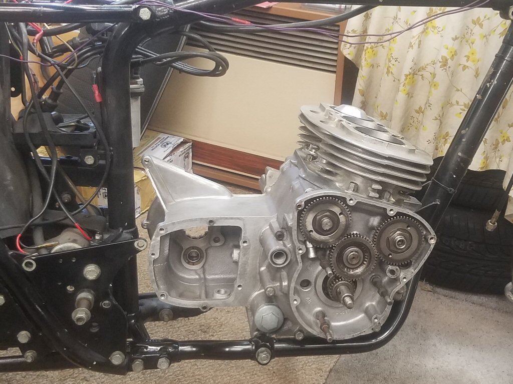 The gearbox screw turned up so I loosened the cover and managed to settle the gasket a bit lower before tightening the whole thing. Although the neutral light switch is not seemingly connected to the idiot light it still obviously has a hole to plug, so I will set it to have minimal contact with the camplate. When that is done I can fill the gearbox with oil.