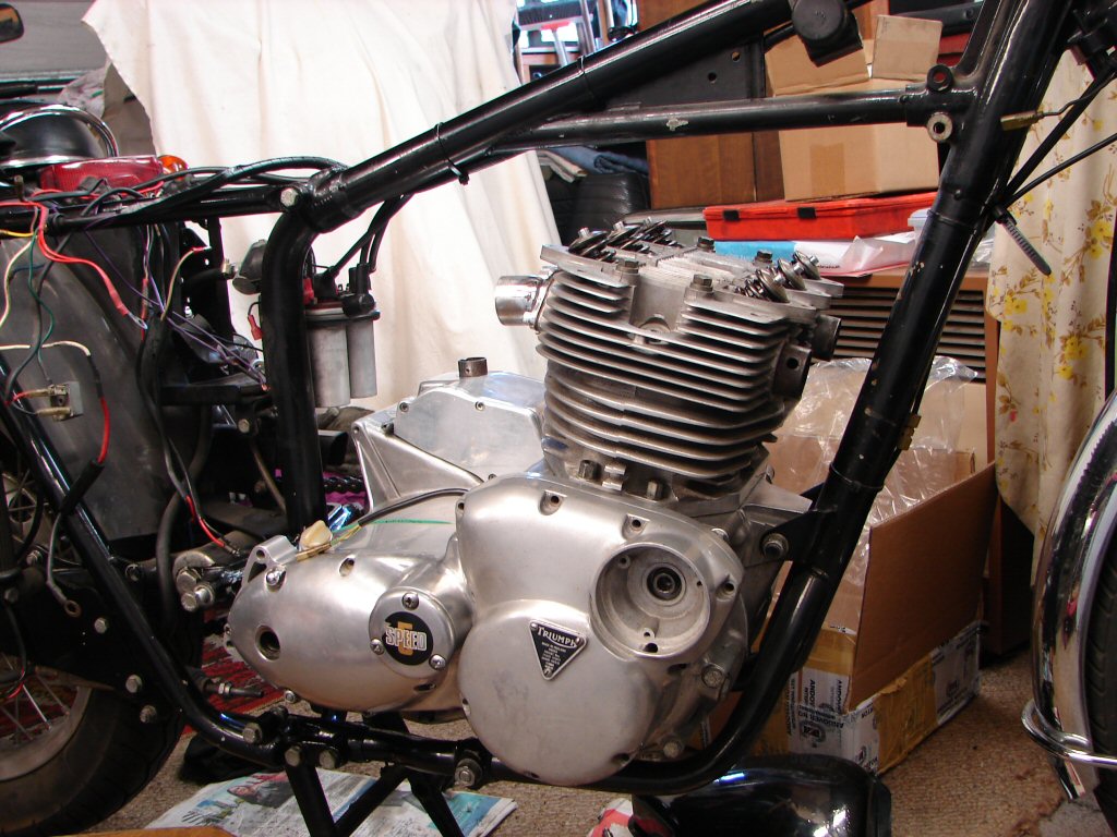 Having an electric start would make the finished article much easier to manage for the owner, and I do have access to a complete and new T160 starter - the original from this bike is long gone - but I had reservations about the Lucas versus 1000cc's of reluctant British gubbings. Considering the estimated price of the new original it seemed no more expensive to instead fit a Madigan unit, with a motor designed to prod a four cylinder Ford Ranger into life, and therefore pretty much guaranteed to do the job in all weathers.