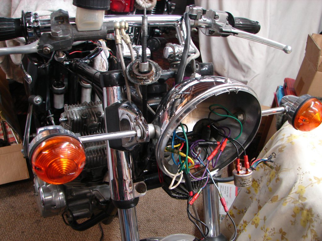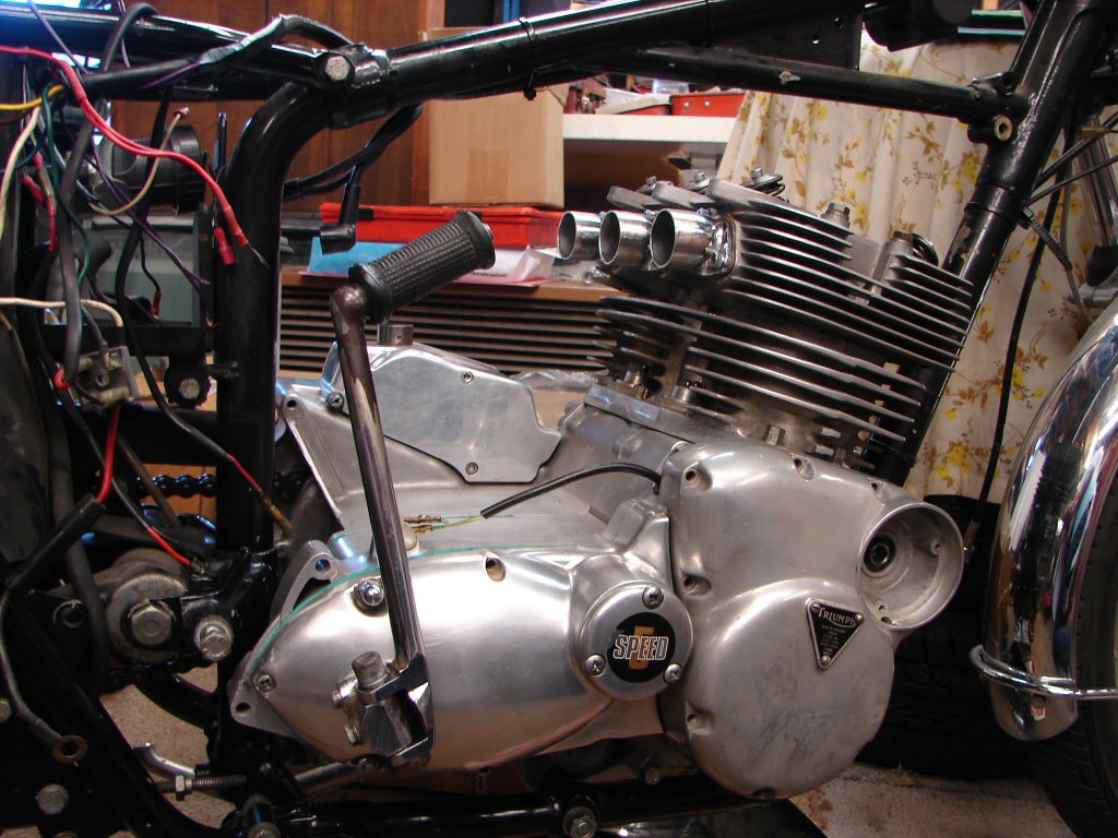There will need to be a bit of nutting out of the wiring as regards the switches the bike has. The left side has a T150 switch which is used for high/low beam, but the horn and indicators have been moved to a small aftermarket switch also on the left side. I am hoping that the unused horn button can be repurposed as a starter button, but first I have to unravel the wiring colours.