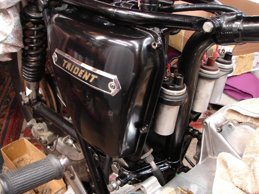 I gave the tank the briefest polish and a new pair of screws in the badge to make it look bright and shiny.