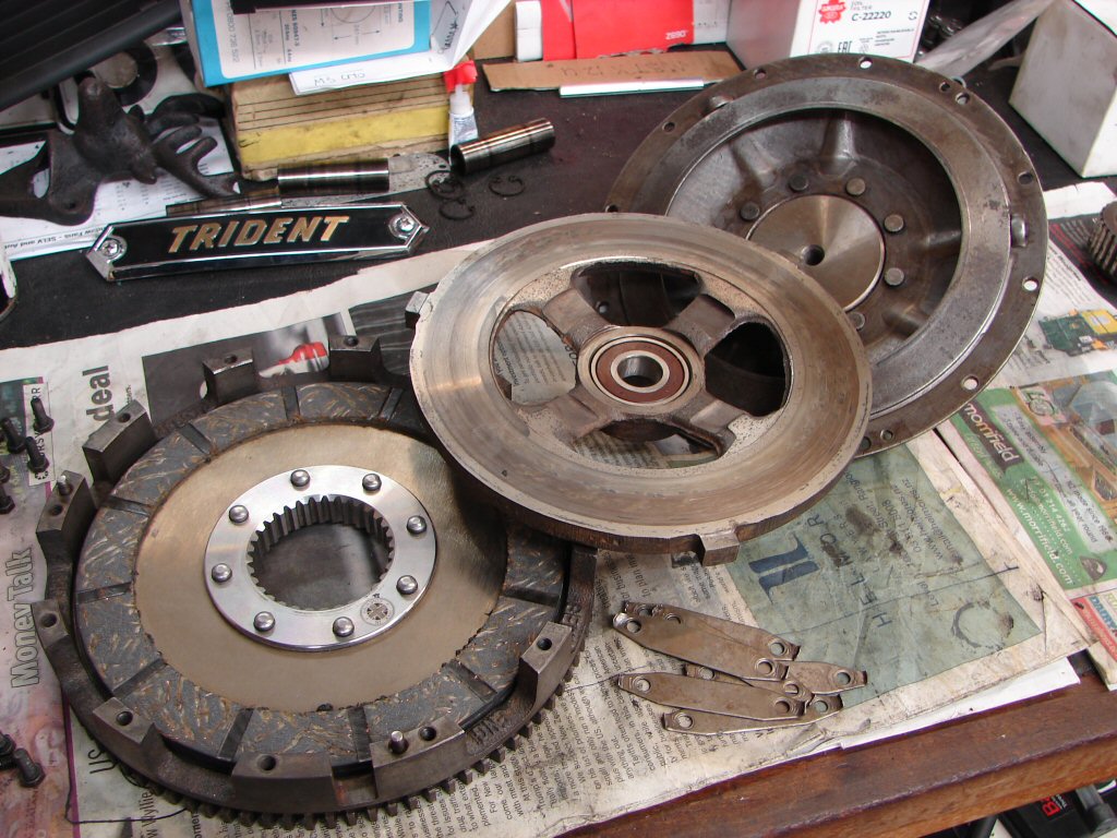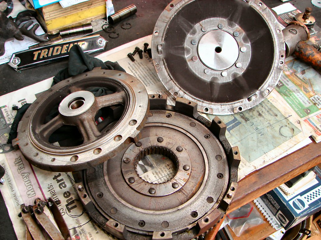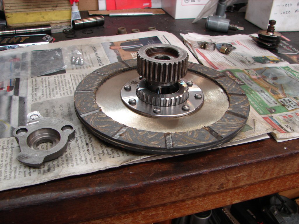 The plate that was fitted is a sintered iron type, as was developed for drag racing, though I find that their action is not as pleasing on take-up as conventional linings such as the new one has. I find that the splines between hub and plate are the fastest wearing parts in the clutch, so the lining material is academic in my opinion. I can understand that with a big bore engine and the intention of racing it one would think the sintered job a better option, but it would never have been my choice.