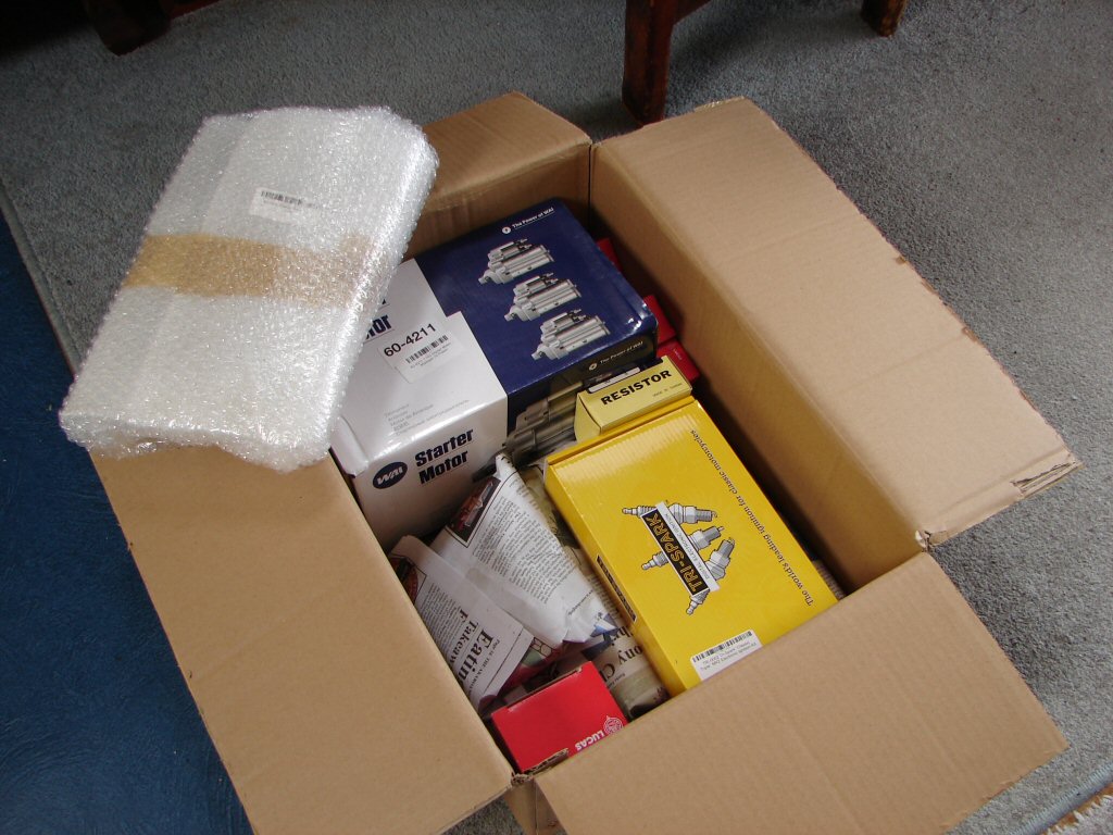 The absence of any wiring left at all relating to an electric start dictated the need for a new wiring loom, so we might as well revert to a few more stock electrical arrangements. Much of all of the above is to be seen in this modest carton of parts hot off the press, whose combined value is pushing 3 grand.
