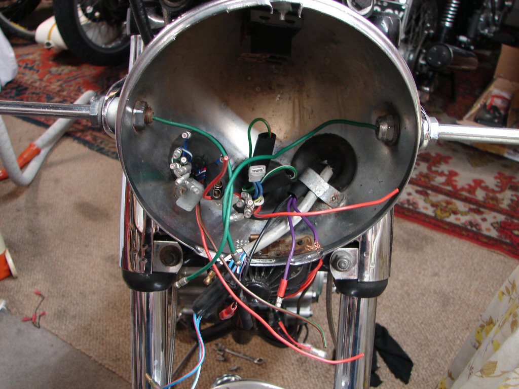 It can be seen that the wires for the brake light switch are not long enough to reach it, nor would they have reached the original, so I shall need to make up a pair of extended wires to make that work. Otherwise the wiring is gradually assuming its place amongst the general scheme of things as progress dictates.