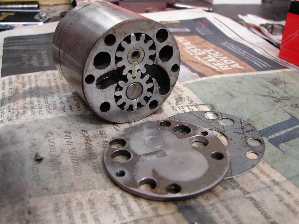 The hole at about 4 o clock is the one that leads to the oil tank, and yet the two larger holes are those whose job it is to handle the outputs from both sides of the pump - one to feed the engine and the other to return all the used oil back to the tank. You would have thought that they might have spotted the crease in the plans a bit earlier in production, that enough oil has to come through that smaller hole to be delivered to the vital parts of the engine through a larger one, no.?