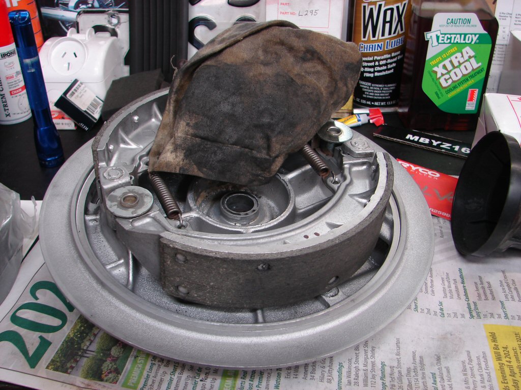 With that all complete and the absence of rain today I started the bike and took a brief ride around the local streets. In order to begin the brake bedding in I ride with a modest amount of brake applied, releasing it every 20 seconds or so then giving it the next go to get things heated up. You can feel the transition taking place gradually, but inevitably it takes many miles until the entire lining surfaces are finally in contact with the drum.