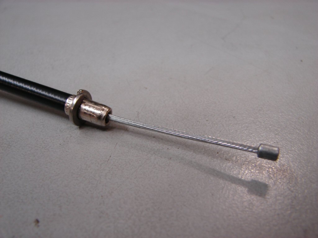 The ferrule on the end of this cable is at the smallest end of its tolerance, while the hole in the end of the junction box is at the largest, and even though I had to use WD40 and a punch to drive it out, the ferrule has gradually worked its way into the plastic until it finally popped right through, so now the cable at the choke end can be fully tight but all it has done is tighten the outer cable to the small piston inside the junction box, while not even attempting to draw the piston and lift the chokes.