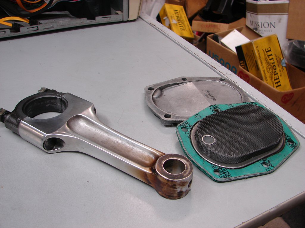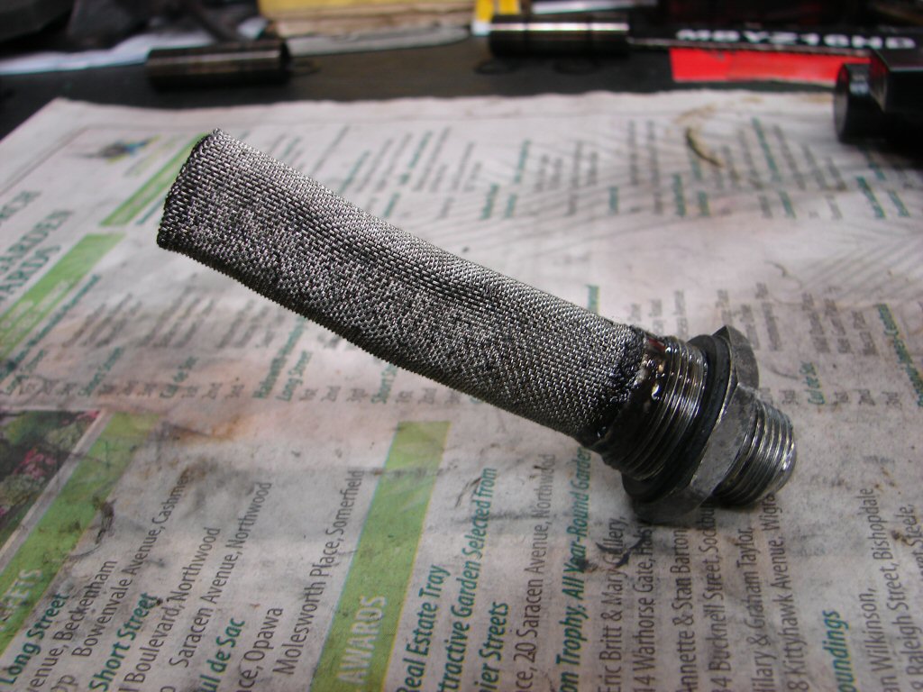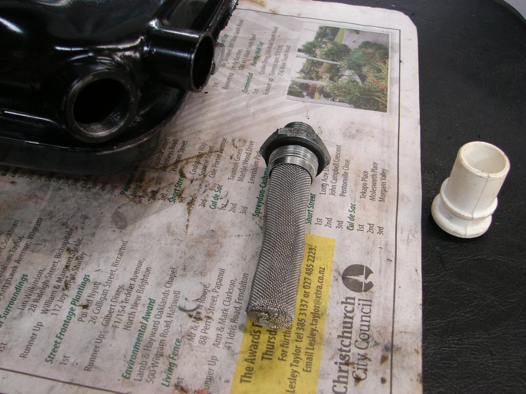 While the sump filter was pretty cruddy it cleaned up well, and there was only a small amount of fairy dust that had made its way through the gauze. That gets carried by the return oil back through the cooler to the tank, so I intend to sacrifice a bit of clean oil on the first run by pushing it through the cooler in the reverse direction in order to give it a good flush. The oil tank will get a clean as well.