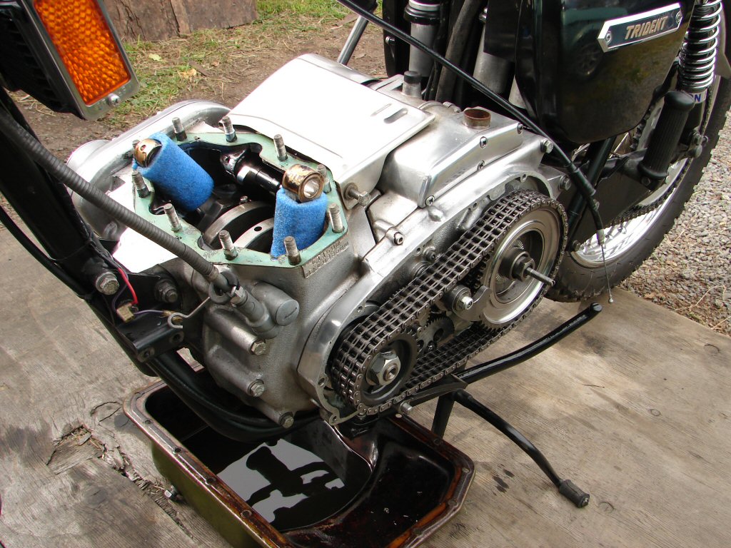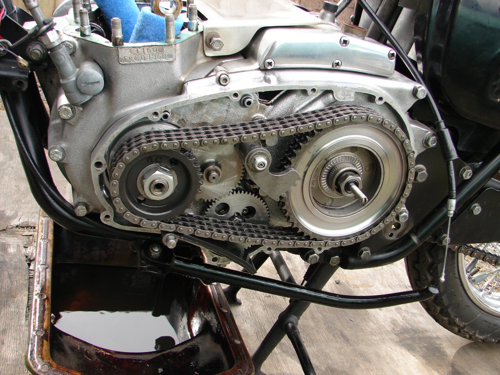 I had been recently told that as a part of the previous work done on the engine, a triplex chain conversion had been fitted. It surely had, and everything looked nicely made and well fitted - except for one thing...