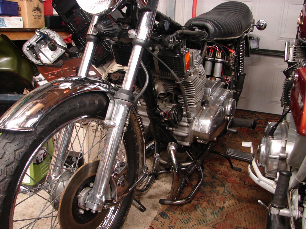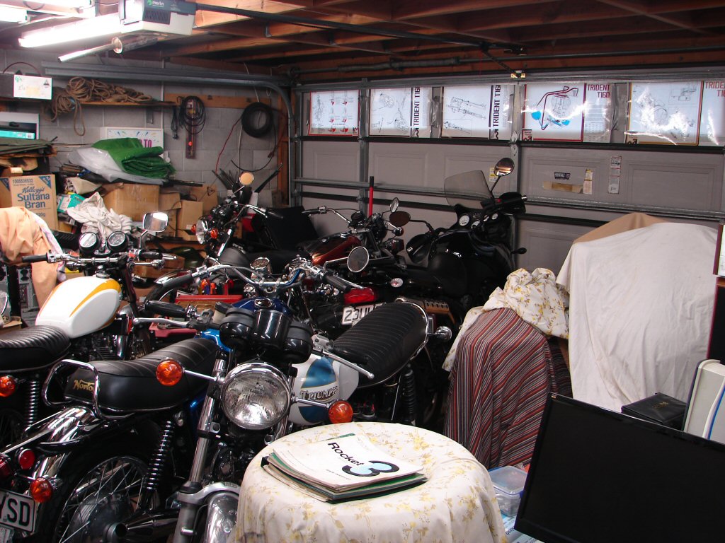 And it all begins to come apart. Tank, exhaust, carbs and filter, blah blah. And yes - it is taking place in that amount of space right now. This bike is potentially going to take root while awaiting any form of machining, so it gets to be at the far side.