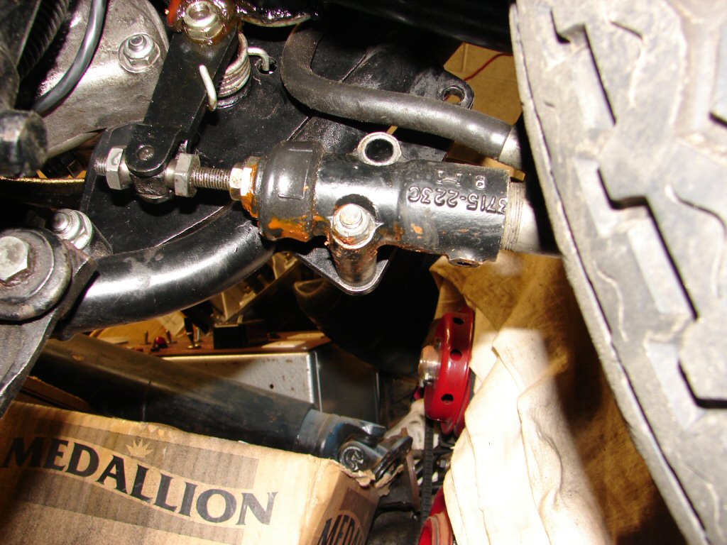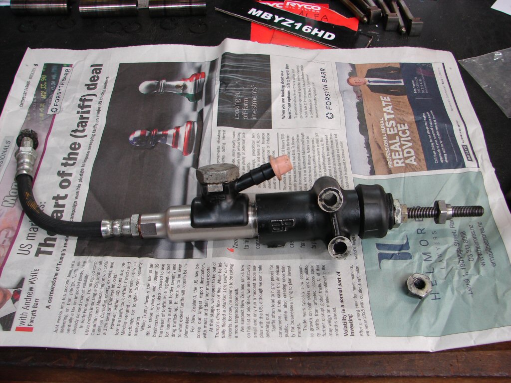 All ancillary bits were cleaned and greased and it went back together a happier unit. When fitting master cylinders to their housings there is a 'timing' process which needs to be observed if you want to be able to bleed the brake successfully, let alone use it. This is done by taking up all the free play between the operating rod and the piston by simply screwing the cylinder in far enough for that to happen. You then screw it in a further full turn, then continue until the grubscrew which locks them together lines up with its slot - you never turn it in the reverse direction at any stage.