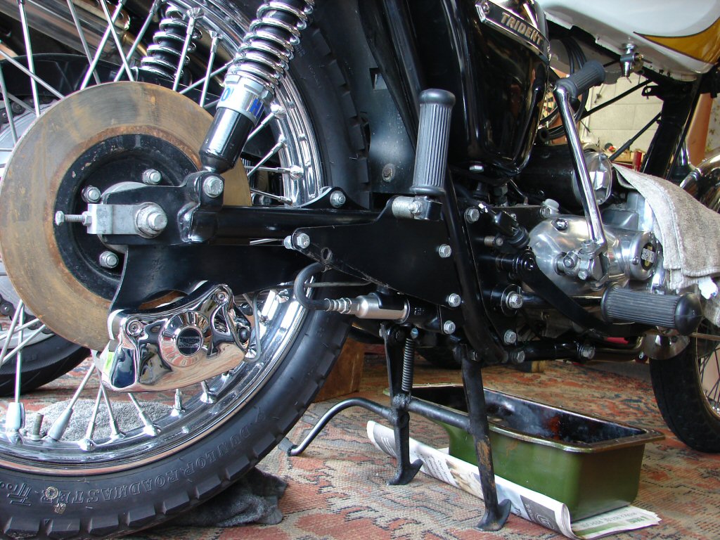 As can be the case, there are often things that come to light and need attending to at the same time, if for no other reason than to shift them to where they really should be so I can work on what I need to. Initially the footpeg retaining bolt was obscured by the speedo cable which should not have been there, and which had also run foul of the drive chain, so that got relocated first, and led to adjusting the drive chain because it needed to be.