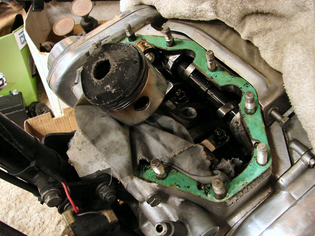 I will drain the oil from the primary chaincase and see if any bits have made their way that far. The engine only ran for a short time after the piston failed, so here's hoping the environmental impact is local.
